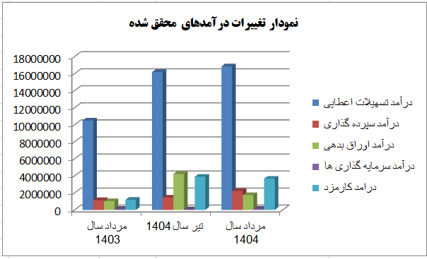 درآمد این بانک در مرداد ۱۴۰۴ نسبت به ماه گذشته آن که معادل با ۲۵ هزار و ۷۷۷ میلیارد و ۵۸۰ میلیون ریال بود با افت ۵ درصدی همراه شد.