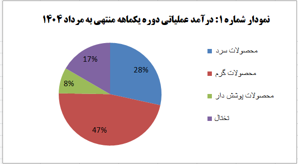 سهم هر یک از محصولات این شرکت در ایجاد درآمد عملیاتی دوره یکماهه منتهی به تیر ۱۴۰۴ را می توان در نمودار شماره یک مشاهده کرد.
