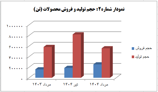 حجم فروش محصولات این شرکت در مرداد ۱۴۰۴ نسبت به دوره مشابه آن در سال گذشته با رشد ۵۹ درصدی و نسبت به ماه گذشته آن (تیر ۱۴۰۴) با افزایش ۳۶ درصدی همراه بود.