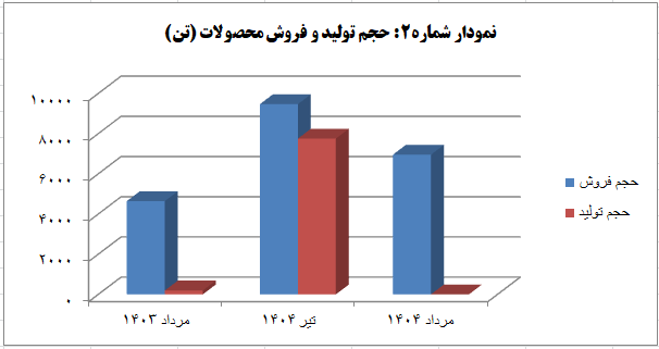 حجم فروش محصولات این شرکت در مرداد ۱۴۰۴ نسبت به دوره مشابه آن در سال گذشته با رشد ۲۷ درصدی و نسبت به ماه گذشته آن (تیر ۱۴۰۴) با کاهش ۲۷ درصدی همراه بود.