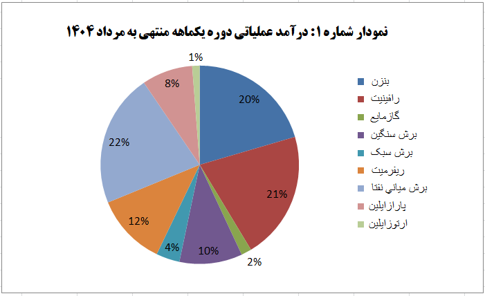 سهم هر یک از محصولات این شرکت در ایجاد درآمد عملیاتی دوره یکماهه منتهی به مرداد ۱۴۰۴ را میتوان در نمودار شماره یک مشاهده کرد.