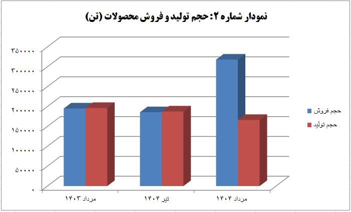 حجم فروش محصولات در مرداد ۱۴۰۴ نسبت به دوره مشابه آن در سال گذشته با رشد ۶۳ درصدی و نسبت به ماه گذشته آن (تیر ۱۴۰۴) با افزایش ۷۱ درصدی همراه بود.