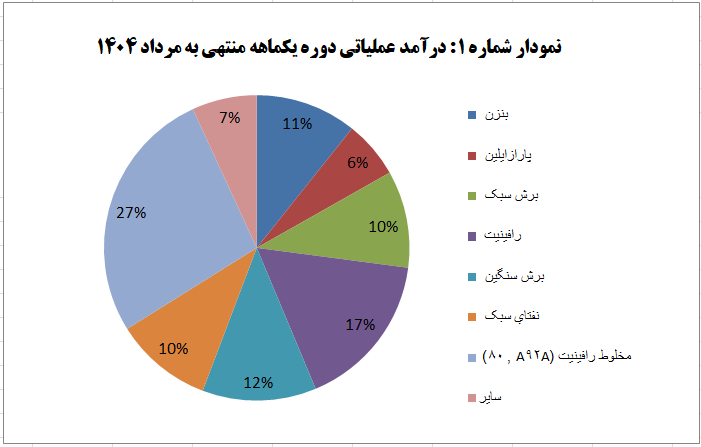 سهم هر یک از محصولات این شرکت در ایجاد درآمد عملیاتی دوره یکماهه منتهی به مرداد ۱۴۰۴ را میتوان در نمودار شماره یک مشاهده کرد.
