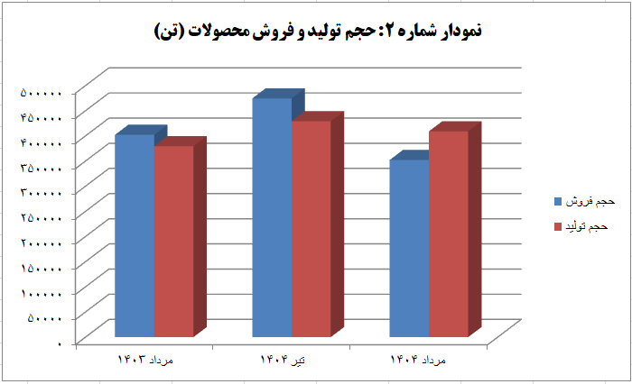 حجم فروش محصولات در مرداد ۱۴۰۴ نسبت به دوره مشابه آن در سال گذشته با کاهش ۱۲ درصدی و نسبت به ماه گذشته آن (تیر ۱۴۰۴) با افت ۲۶ درصدی همراه بود.