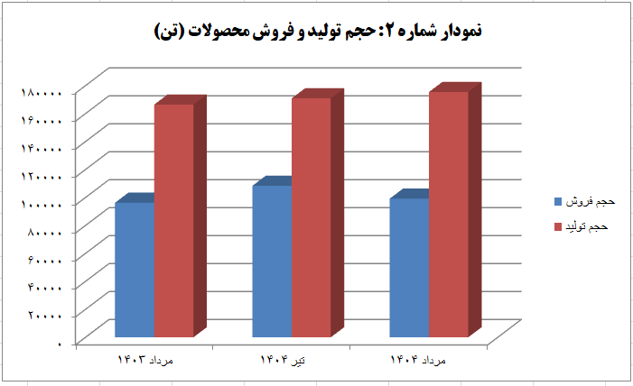 حجم فروش محصولات در مرداد ۱۴۰۴ نسبت به دوره مشابه آن در سال گذشته با رشد ۳ درصدی و نسبت به ماه گذشته آن (تیر ۱۴۰۴) با کاهش ۸ درصدی همراه بود.