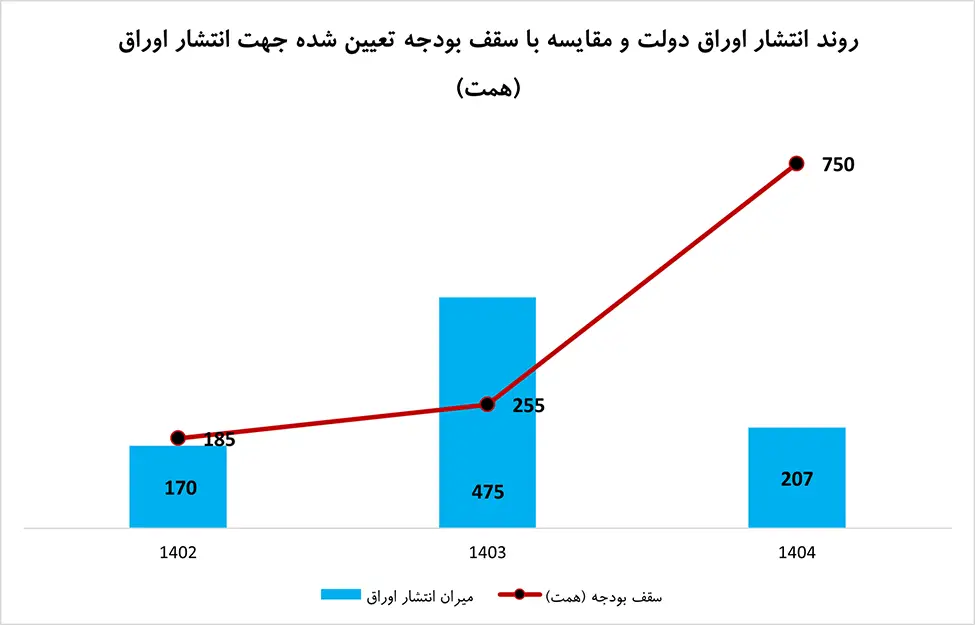 به گفته وی، این روند میتواند آثار منفی متعددی بر بازار سرمایه داشته باشد؛ چرا که افزایش پایه پولی منجر به رشد تورم، بالا رفتن نرخ بهره و در نهایت کاهش جذابیت سرمایهگذاری در سهام میشود. وی افزود: انتشار اوراق دولتی با حجمی بیش از ۷۵۰ همت، فشار بیشتری بر تأمین مالی دولت وارد کرده و هزینه دسترسی به منابع مالی در بازار بدهی را به شکل قابل توجهی افزایش خواهد داد.