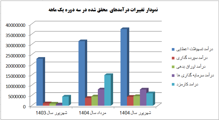 درآمد این بانک در شهریور ۱۴۰۴ نسبت به ماه گذشته آن که معادل با ۶۲,۹۴۹ میلیارد و ۹۳۲ میلیون ریال بود با کاهش ۴ درصدی همراه شد.