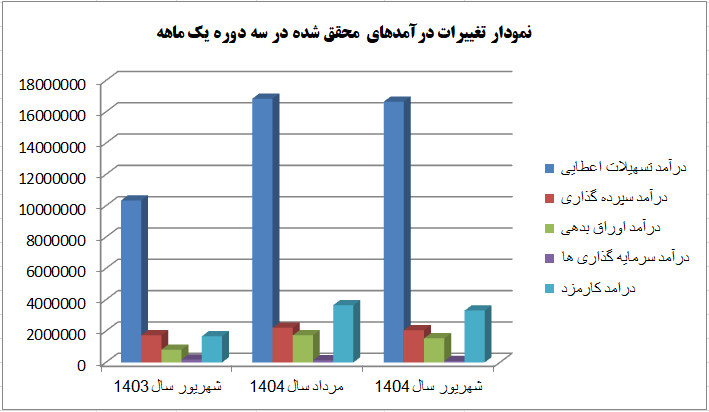 درآمد این بانک در شهریور ۱۴۰۴ نسبت به ماه گذشته آن که معادل با ۲۴,۵۶۵ میلیارد و ۴۴۹ میلیون ریال بود با کاهش ۴ درصدی همراه شد.