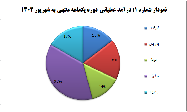 نمودار شماره یک این گزارش، سهم هر یک از محصولات این شرکت در تحقق درآمد عملیاتی شهریور ۱۴۰۴ را به تفکیک نمایش میدهد.