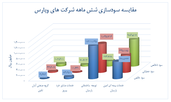 همچنانکه مشخص است، شرکت توسعه ساختمانی پارسیان که در ۶ ماهه فعالیت خود سود ناخالص ۱۹۵ میلیارد ریالی را کسب کرد، با فعالیت های غیرعملیاتی توانست سود خالص را ۴۲ درصد رشد داده و به رقم ۱ هزار و ۲۱۱ میلیارد ریال برساند که این رشد مربوط به اقلام متفرقه بوده است. در دیگر شرکت های عمده سودآوری مربوط به عملیات اصلی بوده است. به طوری که شرکت خدمات بیمه ای امین پارسیان با داشتن سود ناخالص ۹۸۷ میلیارد ریالی پس از کسر هزینه ها به رقم ۶۲۸ میلیارد ریال سود خالص رسید که همچنان در میان ۴ شرکت مورد بررسی مبلغ قابل توجهی بوده است