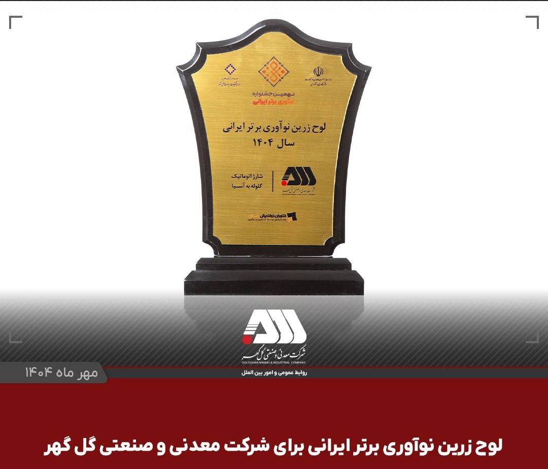 شرکت گل گهر با کسب لوح زرین جشنواره ملی نوآوری برتر ایرانی، برترین نوآوریها را در کشور به نمایش گذاشت.