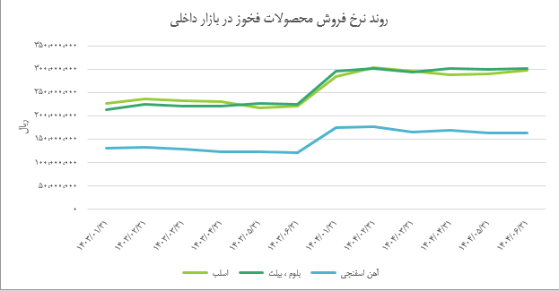 در خرداد ماه نیز فخوز محصول اسلب خود را با نرخ ۲۹۶ میلیون ریال مبادله کرد که رشد ۲۸ درصدی نسبت به خرداد ماه سال گذشته داشت و نزدیک به نرخ اردیبهشت ماه بود. این محصول در نخستین ماه تابستان نیز با نرخ ۲۸۸ میلیون ریالی مبادله شد که نسبت به تیر ماه سال گذشته ۲۵ درصد رشد یافت. در مرداد ماه نیز نرخ اسلب فخوز به ۲۸۹ میلیون ریال عرضه شد که در مقایسه با مرداد ماه ۱۴۰۳ حدود ۳۳ درصد رشد یافت. در پایان تابستان ۱۴۰۴ نیز نرخ اسلب به رقم ۲۹۸ میلیون ریال رسید که ۳۵ درصد نسبت به شهریور ماه سال گذشته افزایش داشت. لازم به ذکر است، نرخ اسلب ظرف شش ماه رشد ۵ درصدی را تجربه کرد.