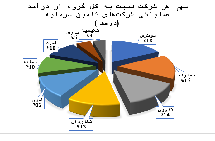 وضعیت سهم هر شرکت نسبت به کل گروه از درآمد عملیاتی شرکتهای تامین سرمایه:
