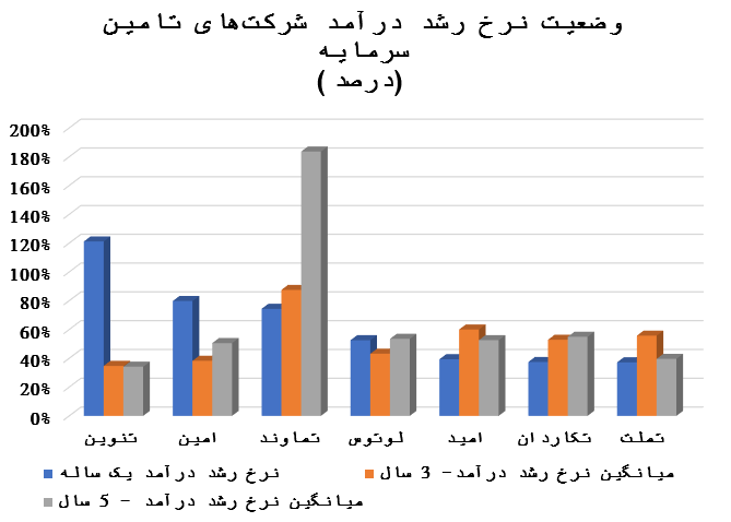 در ادامه وضعیت نرخ رشد درآمدی این شرکتها نیز مورد بررسی و مقایسه قرار میگیرد.
