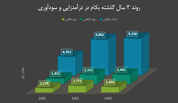 از سوی دیگر، بکام در طی سه سال گذشته روند افزایشی در تحقق درآمد عملیاتی و سود ناخالص داشته است و به این ترتیب سود خالص مطلوبی را به ثبت رسانده است. به طوری که در سال ۱۴۰۱، از درآمد عملیاتی ۴ هزار و ۷۶۳ میلیارد ریالی، مبلغ یکهزار و ۴۵۲ میلیارد ریال سود ناخالص و مبلغ یکهزار و ۱۷۱ میلیارد ریال سود خالص محقق شد.