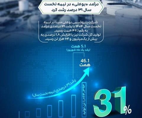 در مجمع عمومی سالیانه شرکت پتروشیمی بوعلی سینا، مدیرعامل از جهش ۱۱۹ درصدی فروش در سهماهه نخست سال خبر داد که درآمد شرکت را از ۱۲ به ۲۰ میلیون دلار رسانده است. این رشد چشمگیر در حالی رخ داده که تولید ریفرمیت به نصف کاهش یافته، اما با بهینهسازی فرآین,...
