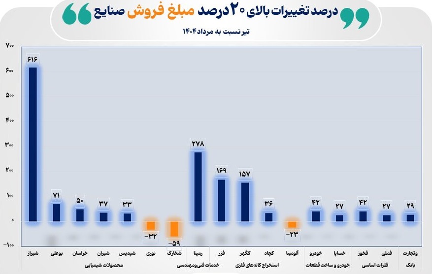 معاونت نظارت بر بورسها و ناشران سازمان بورس و اوراق بهادار در گزارشی ضمن اعلام درصد تغییرات بالای ۲۰ درصد مبلغ فروش صنایع در یکماه گذشته، عمده دلایل این تغییرات را بررسی کرد.,...