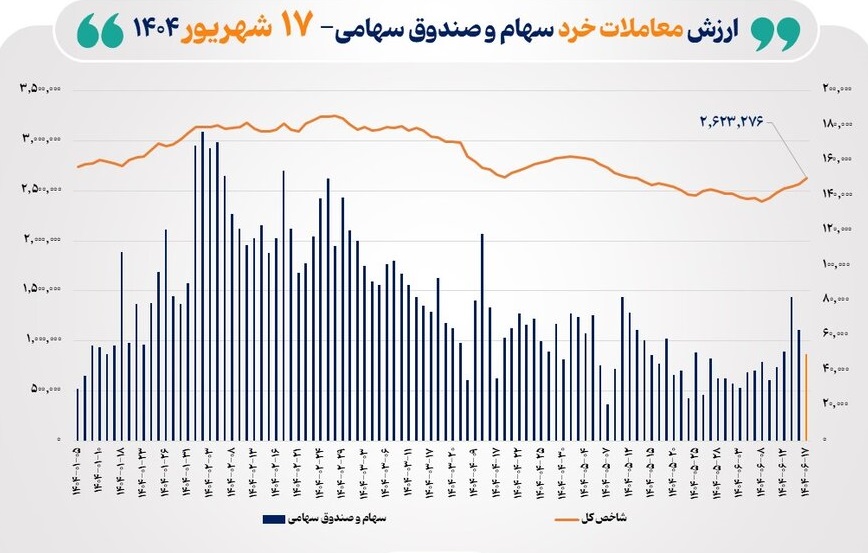 دادههای آماری مدیریت نظارت بر بورسهای سازمان بورس و اوراق بهادار نشان میدهد: در معاملات امروز، یکشنبه بازار سهام، ارزش معاملات خرد، شامل: «مبادلات سهام و صندوقهای سهامی»، به مرز ۵ همت نزدیک شد.,...